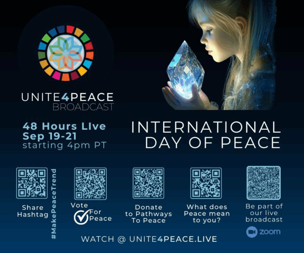 Vi invitiamo a esplorare il significato della PACE per voi, il suo ruolo nella nostra esperienza reciproca. Intraprendete un viaggio nel profondo significato di una pace duratura nel nostro tempo; sperimentate la profonda cura che esiste in ognuno di noi durante la nostra Meditazione Globale. Lasciate il segno durante questa Giornata Internazionale della Pace, il 21 settembre 2025. Partecipate alla trasmissione in streaming, meditate e condividete la vostra voce in occasione della Giornata della Pace.